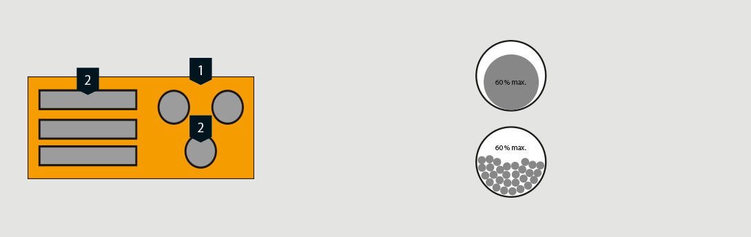 Klasyczne przegrody są wykonywane zgodnie z tzw. regułą 60% zajęcia. Oznacza to, że maks. 60% powierzchni otworu komponentowego, przez który prowadzone są instalacje, może być zajęte przez kable, systemy nośne, rury itd. Pozostała powierzchnia, czyli 40%, musi być wypełniona materiałem przeciwpożarowym „aktywnym” w razie pożaru lub zamknięta. „Aktywny” nie oznacza w tym wypadku, że materiał musi reagować chemicznie. Musi on jedynie zapobiegać przenoszeniu ciepła przez media oraz rozprzestrzenianiu się ognia i dymu. Może to być osiągnięte przez reakcje chemiczne, ale również przez dobry odbiór energii cieplnej i wynikający z niego efekt chłodzenia. Niektóre systemy mogą być całkowicie zajęte. Muszą one jednak być sprawdzone i dopuszczone do takiego celu zastosowania.