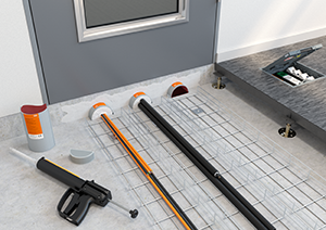Jeśli podłogi podniesione stykają się, na przykład, z drogą ewakuacyjną z wylewanego jastrychu, to pod drzwiami dymoszczelnymi lub drzwiami przeciwpożarowymi musi znajdować się co najmniej częściowa izolacja. W większości przypadków izolację można zamontować tylko z jednej strony. W takich wypadkach polecany jest system PYROCOMB Intube, przegrodzenie kablowe z półpierścieniem.