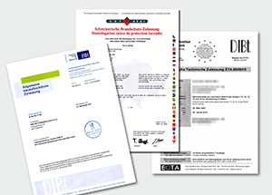 Wymagane ustawowo działanie wzgl. przydatność systemów przegród muszą być potwierdzone badaniami. Te badania pożarowe muszą być przeprowadzane przez urzędowe Instytuty Badań Materiałowych bądź akredytowane instytuty kontrolne, na podstawie norm kontrolnych. Badania pożarowe są podstawą dopuszczenia produktu budowlanego do użycia zgodnego z przeznaczeniem jako system przegród.
