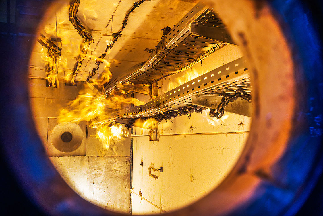 Istotne dla bezpieczeństwa instalacje elektryczne muszą działać tam bez przerwy, nawet w razie pożaru. Takie instalacje – kanały przeciwpożarowe lub kablowe systemy nośne – są badane i oceniane wg DIN 4102, cz. 12 . Podczas badania ogniowego nie może dojść do zwarć elektrycznych ani przerwania przewodów.