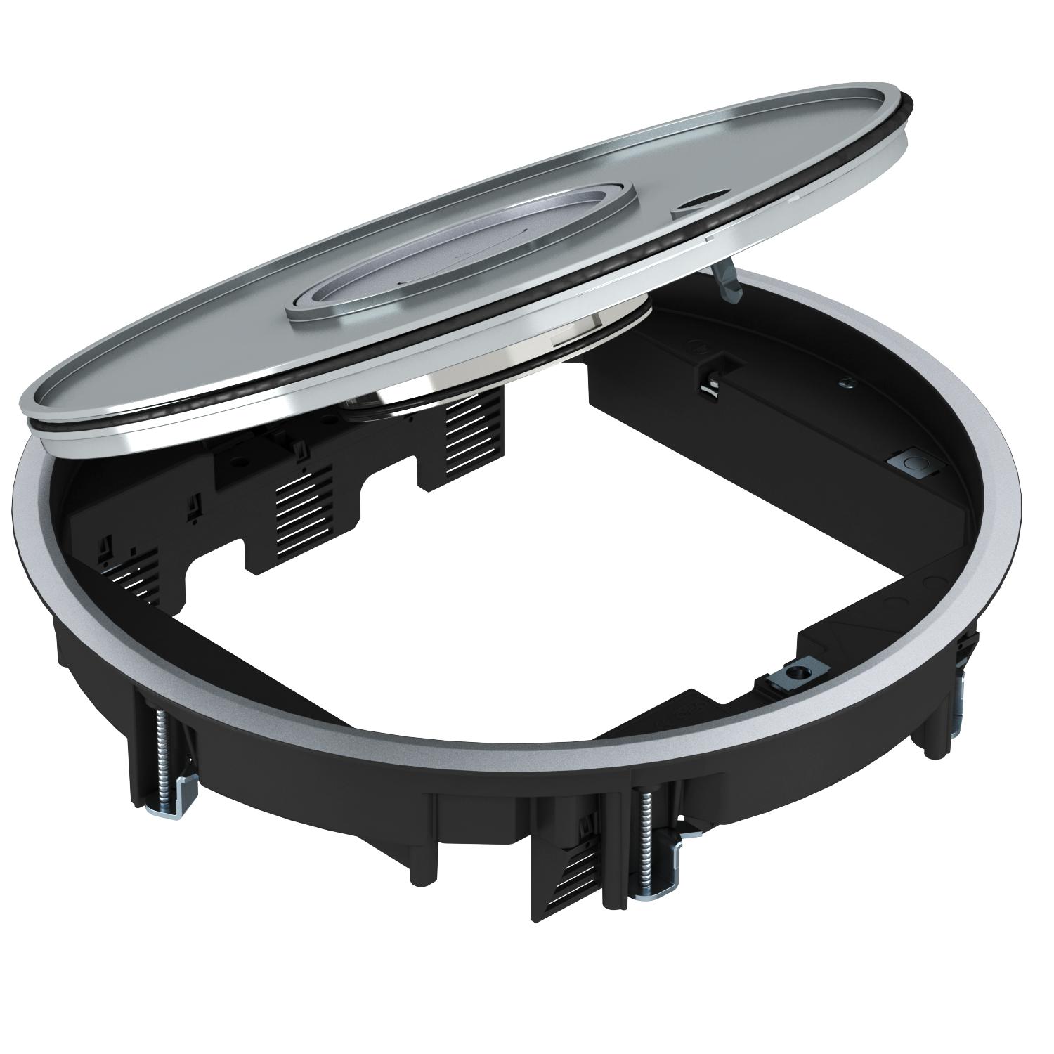 Opis produktuKaseta zasilająca z tubusem do podłóg czyszczonych na mokro, na 12 x Modul 45 w 3 uniwersalnych puszkach instalacyjnych UT4, do zastosowania w systemach kanałów i w podłogach systemowych.