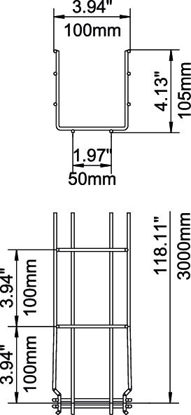 Do korytka siatkowego nie potrzeba dodatkowych elementów łączących, elementy wsuwa się po prostu jedne w drugie. Wielkość oczka wynosi 50 x 100 mm.
