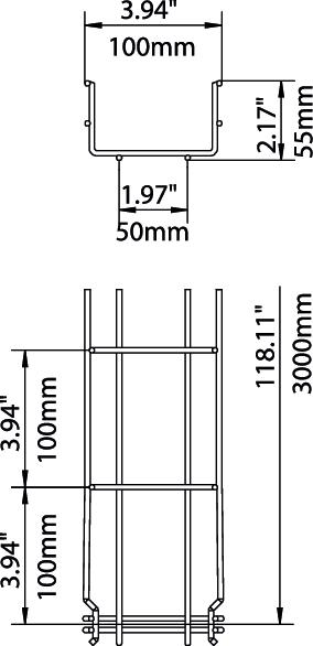 Do korytka siatkowego nie potrzeba dodatkowych elementów łączących, elementy wsuwa się po prostu jedne w drugie. Wielkość oczka to 50 x 100 mm (wyjątek GRM 55/50 = 20 x 100 mm).