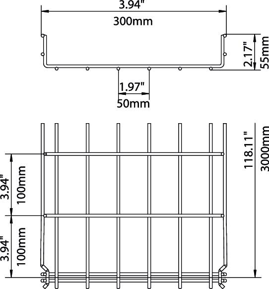 Do korytka siatkowego nie potrzeba dodatkowych elementów łączących, elementy wsuwa się po prostu jedne w drugie. Wielkość oczka to 50 x 100 mm (wyjątek GRM 55/50 = 20 x 100 mm).