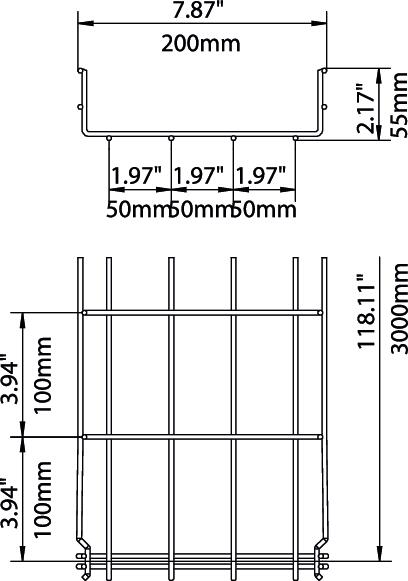 Do korytka siatkowego nie potrzeba dodatkowych elementów łączących, elementy wsuwa się po prostu jedne w drugie. Wielkość oczka to 50 x 100 mm (wyjątek GRM 55/50 = 20 x 100 mm).