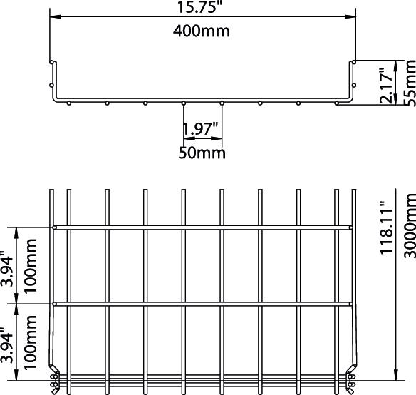 Do korytka siatkowego nie są potrzebne dodatkowe elementy połączeniowe, wkłada się je po prostu jedno w drugie. Wielkość oczek wynosi 50 x 100 mm (wyjątek GRM 55/50 = 20 x 100 mm).