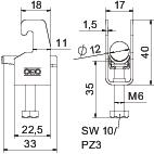 Opis produktuObejma kabłąkowa plastikowa ze stopką w kształcie U, wanienka dociskowa wykonana z polipropylenu. Do pionowego i poziomego montażu pojedynczego kabla na szynie o profilu C. Szerokość szczeliny 18-22 mm Z gwintem jednoskokowym na wanience dociskowej, łeb sześciokątny uniwersalny SW10, z rowkiem i łbem krzyżakowym Nadaje się do montażu wewnątrz i na zewnątrz Zalecamy użycie wanienki dociskowej