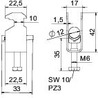 Opis produktuObejma kabłąkowa ze stopką z łbem młotkowym, plastikowa wanienka dociskowa z polipropylenu Do pionowego i poziomego montażu pojedynczego kabla na szynie o profilu C. Do szczeliny o szerokości 16 - 17 mm. Z gwintem jednoskokowym na wanience dociskowej, łeb sześciokątny uniwersalny SW10, z rowkiem i łbem krzyżakowym Nadaje się do montażu wewnątrz i na zewnątrz Zalecamy użycie wanienki dociskowej
