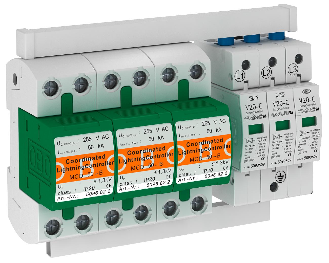 • Zdolność odprowadzania prądu piorunowego do 50 kA (10/350) na biegun