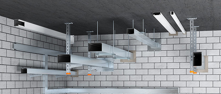 Instalacje elektryczne mogą być zamontowane podtynkowo, w kanałach przeciwpożarowych lub w kanałach podpodłogowych. Jeśli na drogach ratunkowych zamontowano sufity sklasyfikowane pod względem techniki przeciwpożarowej, to nad tymi sufitami F30/F90 stosowane są przetestowane pod kątem odporności ogniowej kablowe systemy nośne oraz systemy instalacyjne.