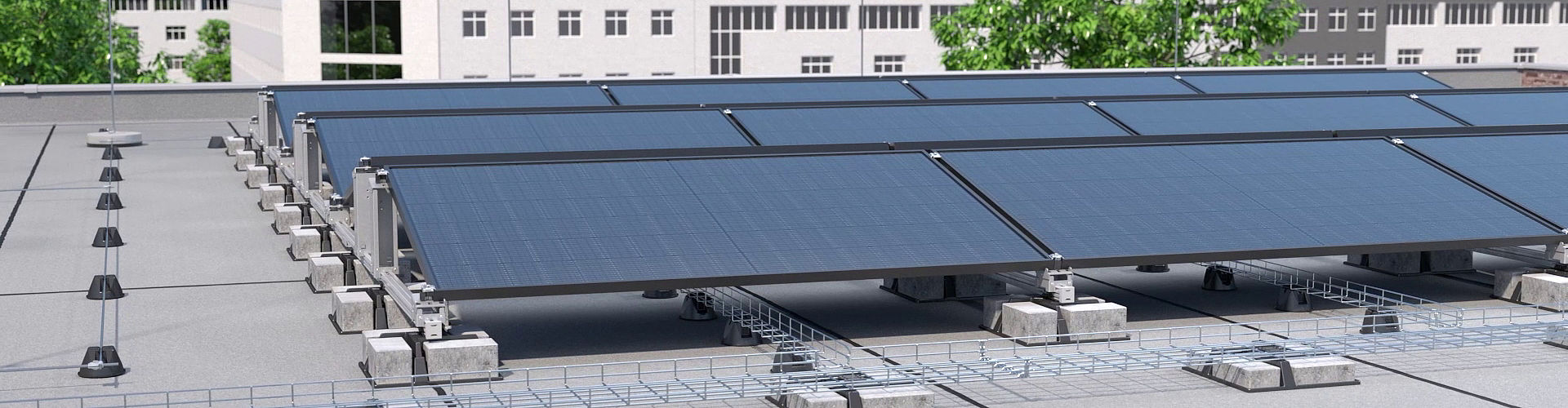 System Magic PV Flat Pro do instalacji na dachach płaskich zapewnia montaż bez użycia śrub i narzędzi dzięki technologii Magic. Wysokiej jakości materiały i maksymalnie wytrzymałe komponenty systemu stanowią podstawę trwałego systemu montażowego. Istnieje możliwość zintegrowania systemu do układania kabli za pomocą korytka kratowego.System balastowy UniBase zapewnia zmienne obciążenie całego systemu za pomocą prostokątnych kostki brukowej – nawet po zakończeniu montażu. Dzięki elastycznym komponentom systemowym produkty można łączyć w systemy do dachów płaskich i spadzistych. Znacznie zmniejsza to liczbę potrzebnych pojedynczych komponentów.